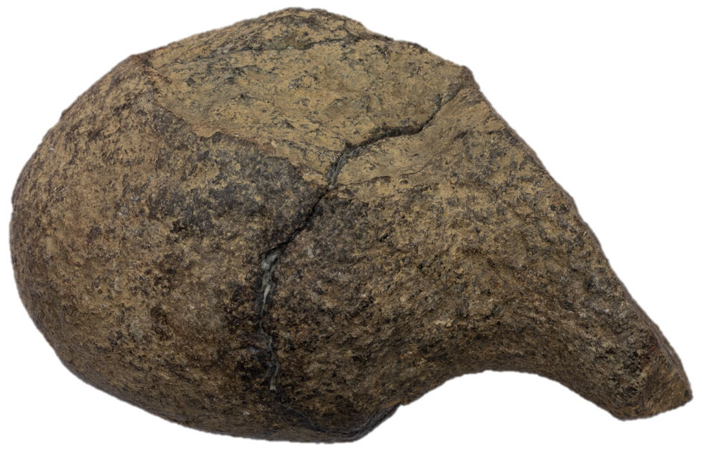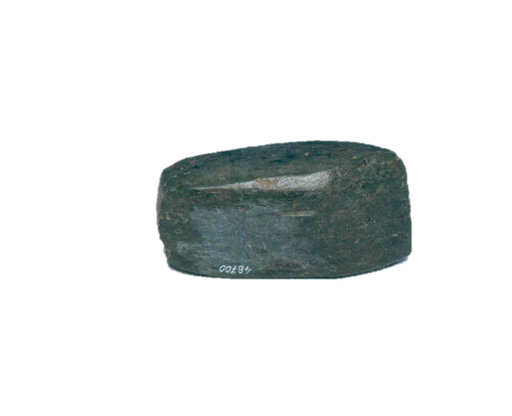 Questo strumento dalla punta arrotondata, in diorite locale, aveva una funzione battente. L’ampia scanalatura mediana era utilizzata per immanicare l’oggetto: un’immanicatura, molto consistente, adatta alle dimensioni e al peso dello strumento, che doveva avvicinarsi, da integro, al chilogrammo.