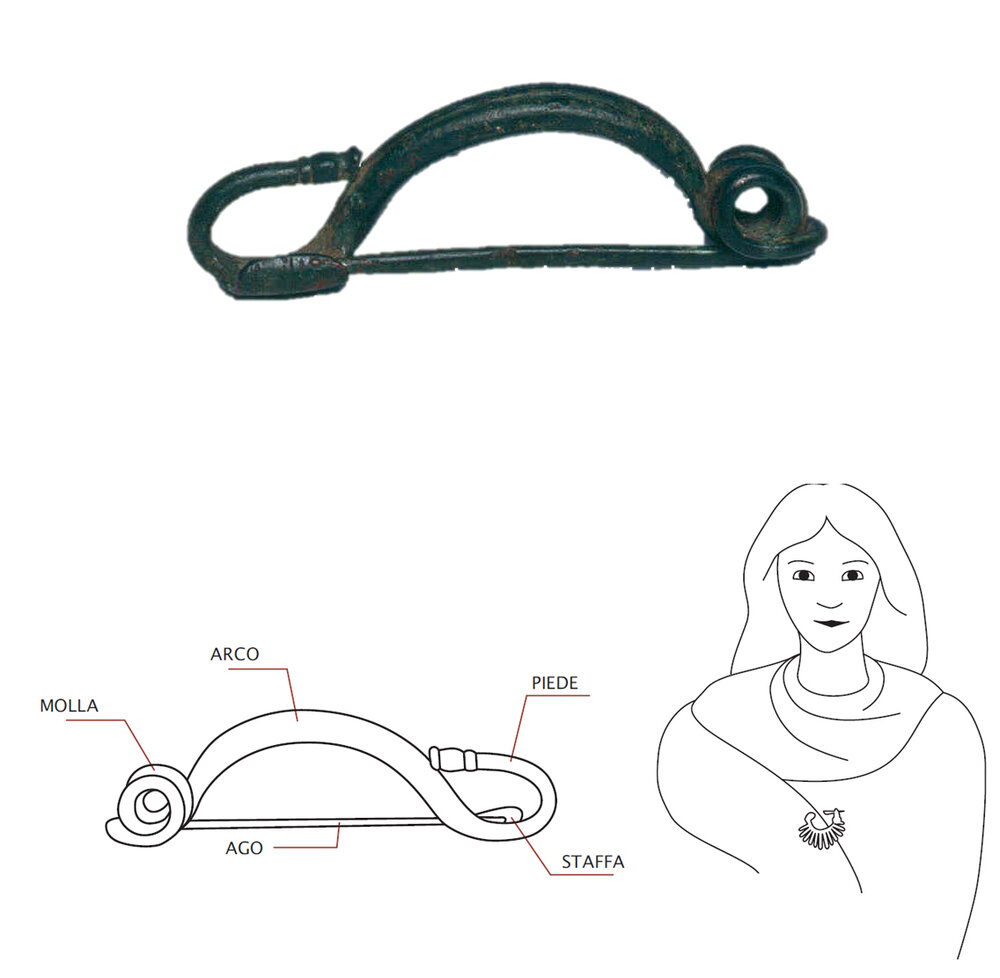 Si tratta di un fermaglio per le vesti, o fibula, oggetto che serviva per unire due parti di tessuto, e per ornare e impreziosire l’abbigliamento.