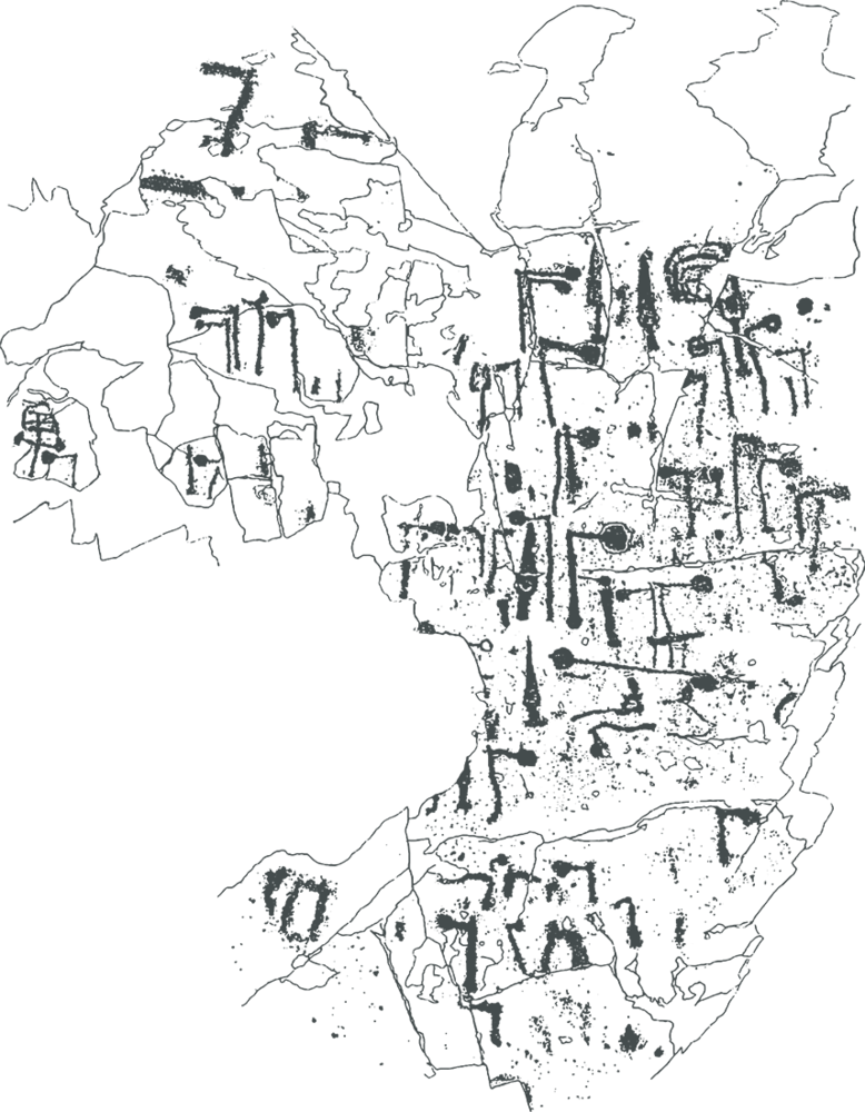 Quello che vedi è il rilievo archeologico di un'importante porzione della roccia: osserva come le armi si combinano tra loro, a formare allineamenti e incastri, e come ogni singolo oggetto sia "unico", differente dagli altri.