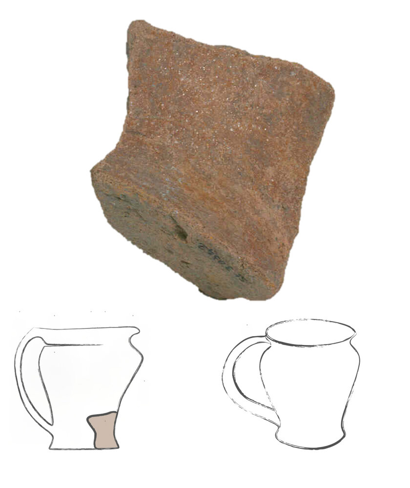Ecco un piccolo frammento di contenitore, un fondo di vaso lavorato al tornio, all’apparenza poco interessante. In realtà, questo modesto pezzetto di ceramica ci fornisce numerose informazioni, perché appartiene ad una tipologia di boccali ben definita, chiamati “di tipo Breno”. Qui puoi vedere la ricostruzione di come doveva apparire da integro.